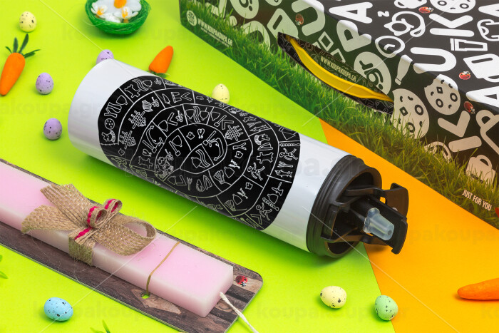 Δίσκος Φαιστού, Easter candle,Travel Tumbler 2 Lids, with metal straw & cleaning brush & aromatic flat candle (30cm) (PINK)