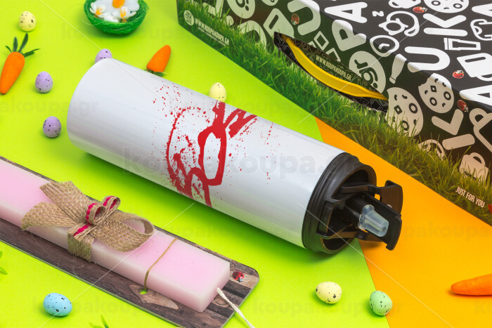 Οι 300 της Σπάρτης, Easter candle,Travel Tumbler 2 Lids, with metal straw & cleaning brush & aromatic flat candle (30cm) (PINK)