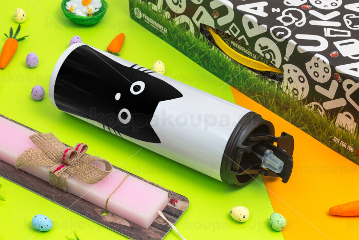 Black Cat, Easter candle,Travel Tumbler 2 Lids, with metal straw & cleaning brush & aromatic flat candle (30cm) (PINK)