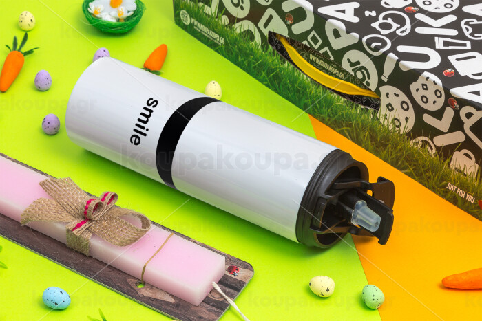 Smile!!!, Easter candle,Travel Tumbler 2 Lids, with metal straw & cleaning brush & aromatic flat candle (30cm) (PINK)
