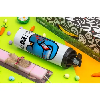 Among Trust no one, Easter candle,Travel Tumbler 2 Lids, with metal straw & cleaning brush & aromatic flat candle (30cm) (PINK)
