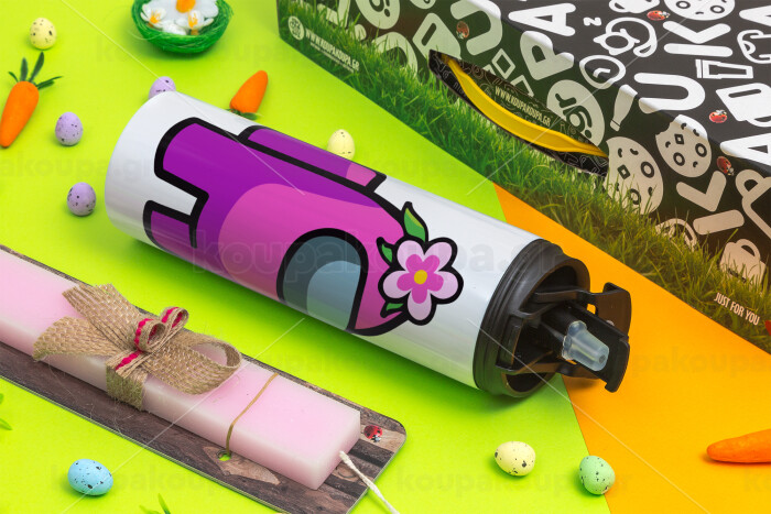 Among US girl, Easter candle,Travel Tumbler 2 Lids, with metal straw & cleaning brush & aromatic flat candle (30cm) (PINK)