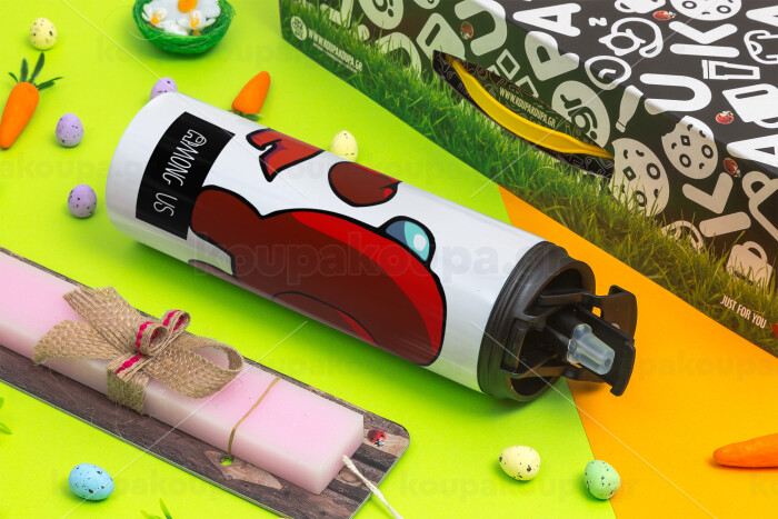 Among US i am impostor..., Easter candle,Travel Tumbler 2 Lids, with metal straw & cleaning brush & aromatic flat candle (30cm) (PINK)