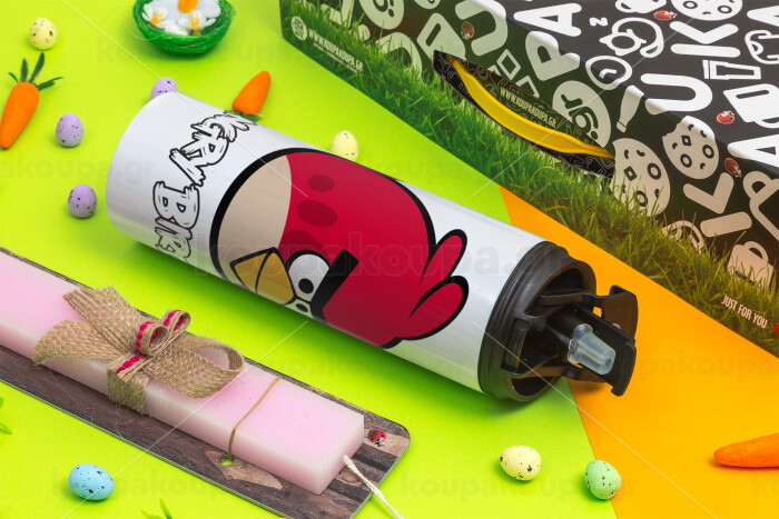 Angry birds Terence, Easter candle,Travel Tumbler 2 Lids, with metal straw & cleaning brush & aromatic flat candle (30cm) (PINK)