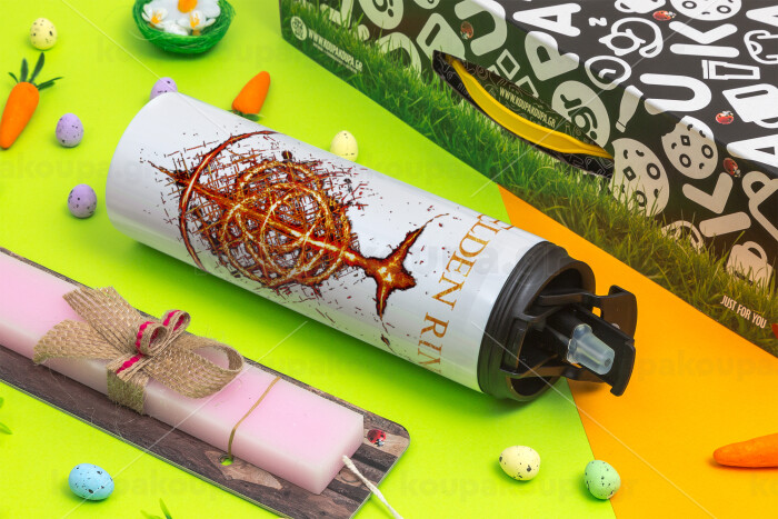 Elden Ring, Easter candle,Travel Tumbler 2 Lids, with metal straw & cleaning brush & aromatic flat candle (30cm) (PINK)