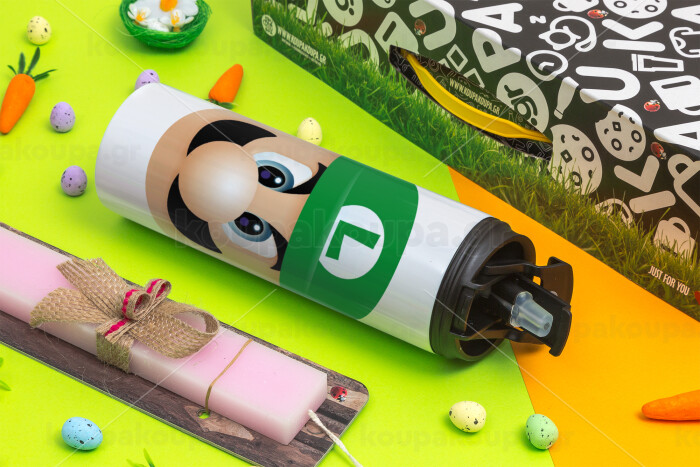 Luigi flat, Easter candle,Travel Tumbler 2 Lids, with metal straw & cleaning brush & aromatic flat candle (30cm) (PINK)