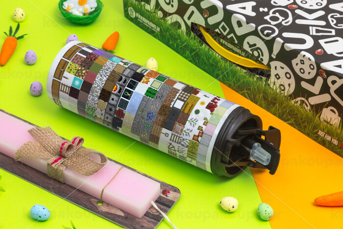 Minecraft blocks, Easter candle,Travel Tumbler 2 Lids, with metal straw & cleaning brush & aromatic flat candle (30cm) (PINK)