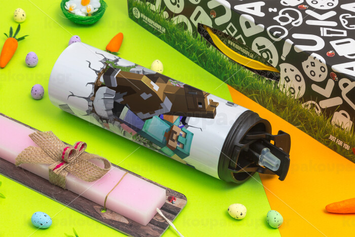 Minecraft brick, Easter candle,Travel Tumbler 2 Lids, with metal straw & cleaning brush & aromatic flat candle (30cm) (PINK)