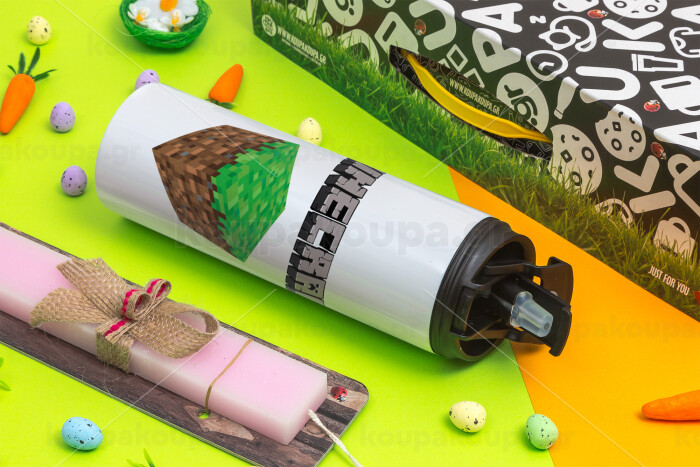 Minecraft dirt, Easter candle,Travel Tumbler 2 Lids, with metal straw & cleaning brush & aromatic flat candle (30cm) (PINK)