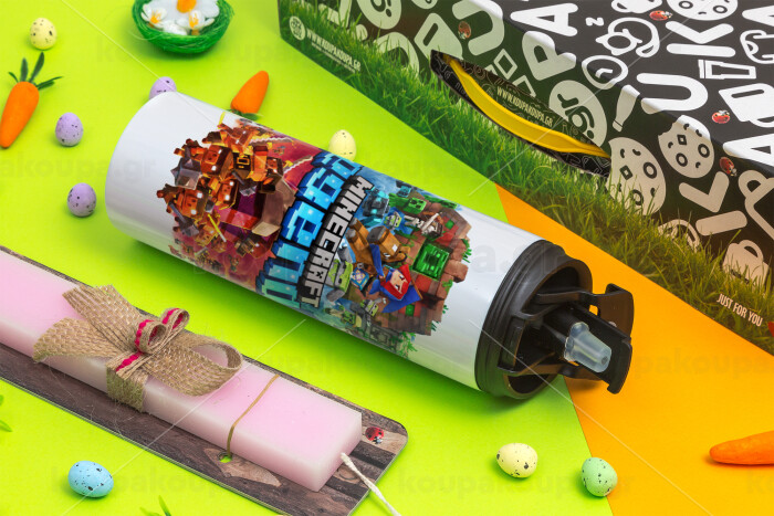 Minecraft legends, Easter candle,Travel Tumbler 2 Lids, with metal straw & cleaning brush & aromatic flat candle (30cm) (PINK)