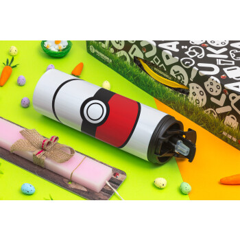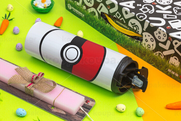Pokemon ball, Easter candle,Travel Tumbler 2 Lids, with metal straw & cleaning brush & aromatic flat candle (30cm) (PINK)