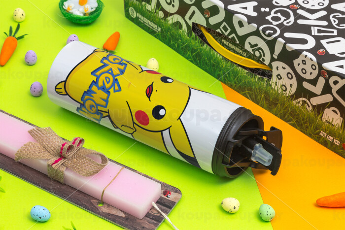 Pokemon pikachu, Easter candle,Travel Tumbler 2 Lids, with metal straw & cleaning brush & aromatic flat candle (30cm) (PINK)
