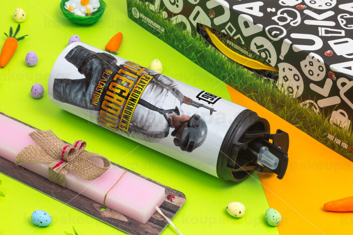 PUBG battleground royale, Easter candle,Travel Tumbler 2 Lids, with metal straw & cleaning brush & aromatic flat candle (30cm) (PINK)