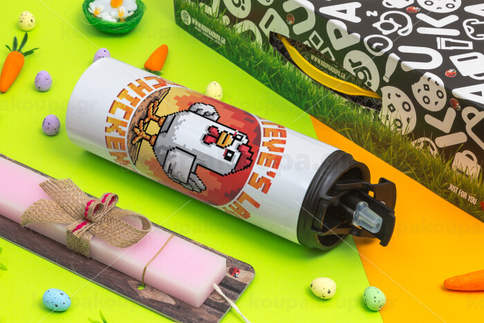 Steve's Lava Chicken, Easter candle,Travel Tumbler 2 Lids, with metal straw & cleaning brush & aromatic flat candle (30cm) (PINK)