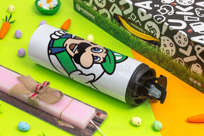 Super mario Luigi win, Easter candle,Travel Tumbler 2 Lids, with metal straw & cleaning brush & aromatic flat candle (30cm) (PINK)