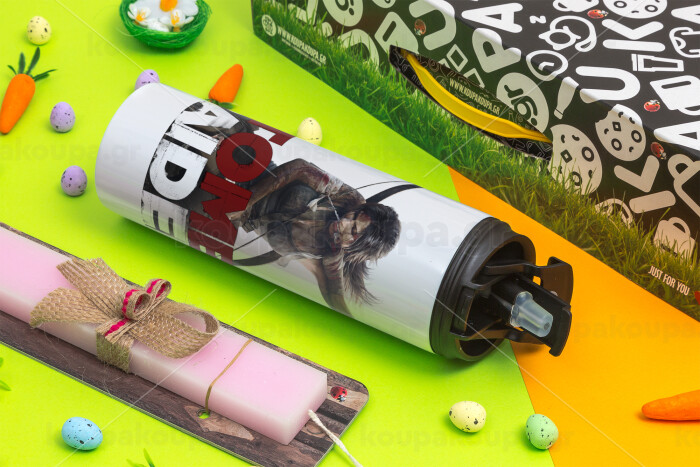 Tomb raider, Easter candle,Travel Tumbler 2 Lids, with metal straw & cleaning brush & aromatic flat candle (30cm) (PINK)