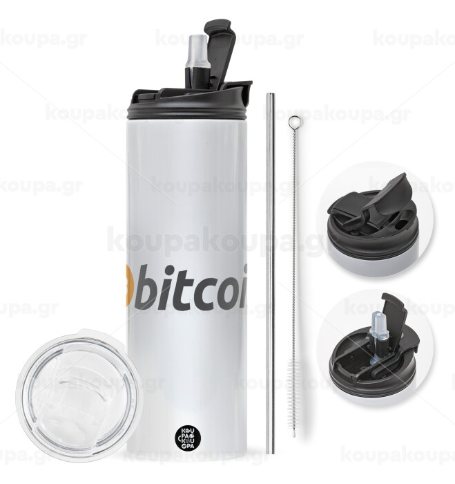 Bitcoin Crypto, Easter candle,Travel Tumbler 2 Lids, with metal straw & cleaning brush & aromatic flat candle (30cm) (PINK)