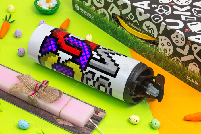 MsDos, Easter candle,Travel Tumbler 2 Lids, with metal straw & cleaning brush & aromatic flat candle (30cm) (PINK)