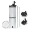 Eco friendly hot glass 600ml with metal reusable straw. Enjoy your favorite drink at any moment in this unique ecological thermos. It maintains the temperature for several hours and is made of stainless steel. Suitable for hot and cold drinks. Comes with a cleaning brush for the straw.