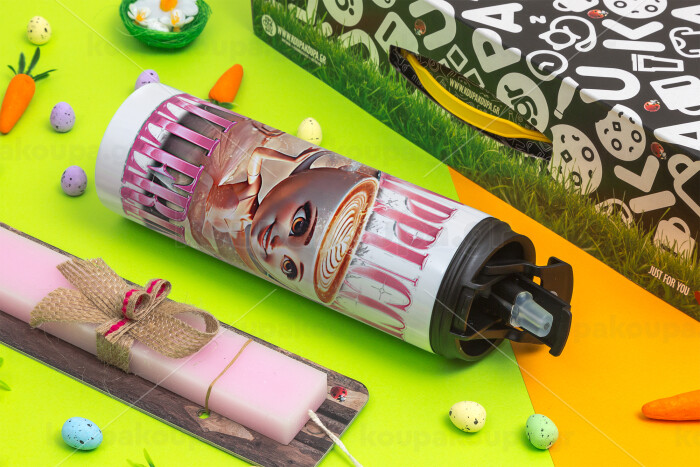 BALLERINA CAPUCHINA FUNK, Easter candle,Travel Tumbler 2 Lids, with metal straw & cleaning brush & aromatic flat candle (30cm) (PINK)