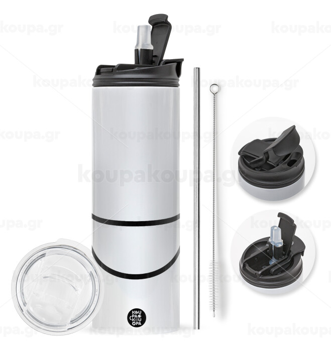 Eco friendly hot glass 600ml with metal reusable straw. Enjoy your favorite drink at any moment in this unique ecological thermos. It maintains the temperature for several hours and is made of stainless steel. Suitable for hot and cold drinks. Comes with a cleaning brush for the straw.