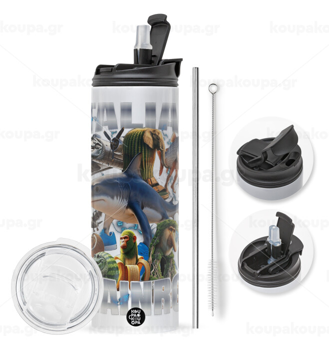 Italian Brainrot, Easter candle,Travel Tumbler 2 Lids, with metal straw & cleaning brush & aromatic flat candle (30cm) (PINK)