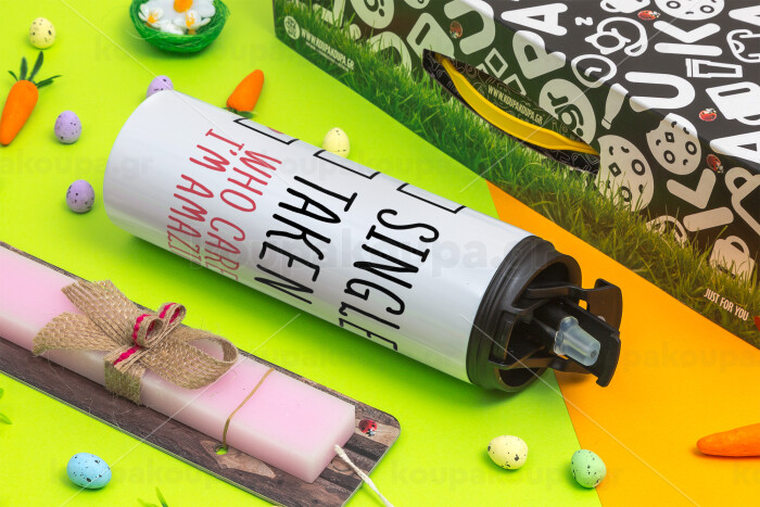 Single, Taken, Who cares i'm amazing, Easter candle,Travel Tumbler 2 Lids, with metal straw & cleaning brush & aromatic flat candle (30cm) (PINK)