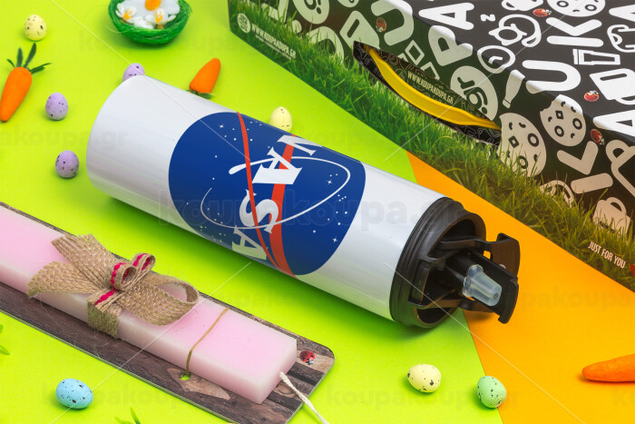Nasa, Easter candle,Travel Tumbler 2 Lids, with metal straw & cleaning brush & aromatic flat candle (30cm) (PINK)