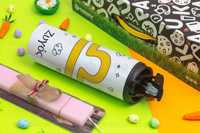 Ζώδια Ζυγός, Easter candle,Travel Tumbler 2 Lids, with metal straw & cleaning brush & aromatic flat candle (30cm) (PINK)