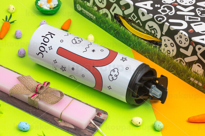 Ζώδια Κριός, Easter candle,Travel Tumbler 2 Lids, with metal straw & cleaning brush & aromatic flat candle (30cm) (PINK)
