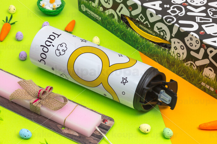 Ζώδια Ταύρος, Easter candle,Travel Tumbler 2 Lids, with metal straw & cleaning brush & aromatic flat candle (30cm) (PINK)