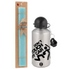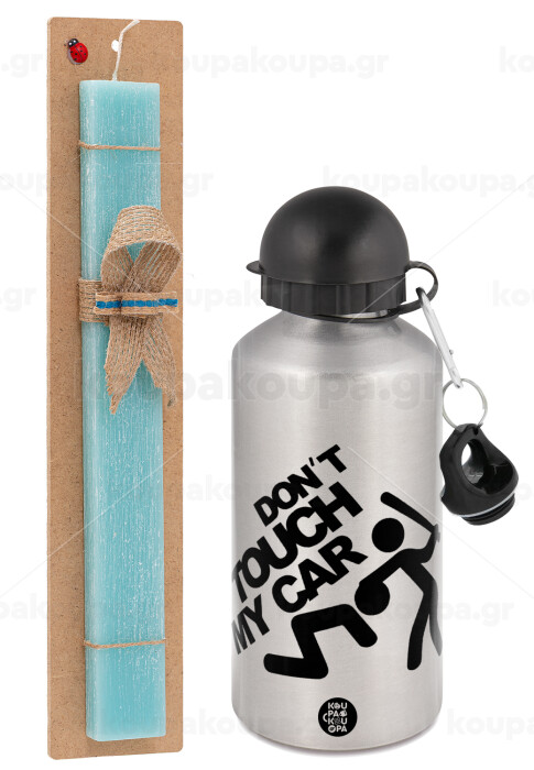 Don't touch my car, Easter Set, metallic silver aluminum water bottle (500ml) & scented flat Easter candle (30cm) (TURQUOISE)