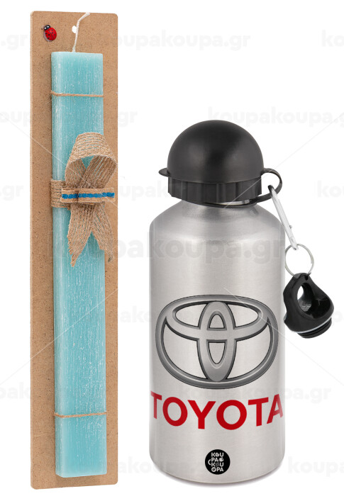 Toyota, Easter Set, metallic silver aluminum water bottle (500ml) & scented flat Easter candle (30cm) (TURQUOISE)