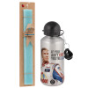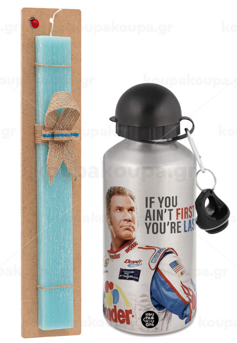 If You Ain't First You're Last Ricky Bobby, Talladega Nights, Easter Set, metallic silver aluminum water bottle (500ml) & scented flat Easter candle (30cm) (TURQUOISE)