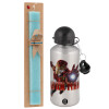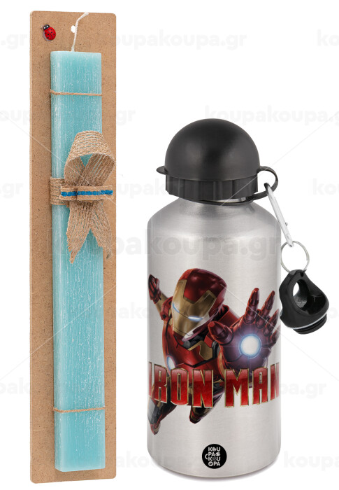 Ironman, Easter Set, metallic silver aluminum water bottle (500ml) & scented flat Easter candle (30cm) (TURQUOISE)