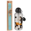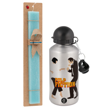 Pulp Fiction dancing, Easter Set, metallic silver aluminum water bottle (500ml) & scented flat Easter candle (30cm) (TURQUOISE)