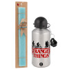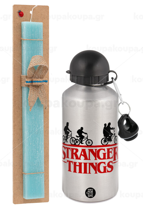 Stranger Things red, Easter Set, metallic silver aluminum water bottle (500ml) & scented flat Easter candle (30cm) (TURQUOISE)