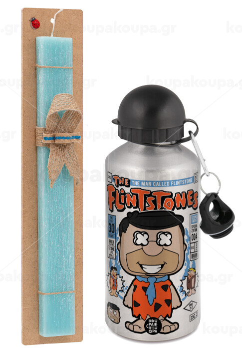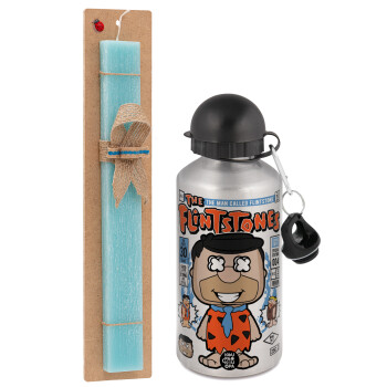 The flintstones, Easter Set, metallic silver aluminum water bottle (500ml) & scented flat Easter candle (30cm) (TURQUOISE)