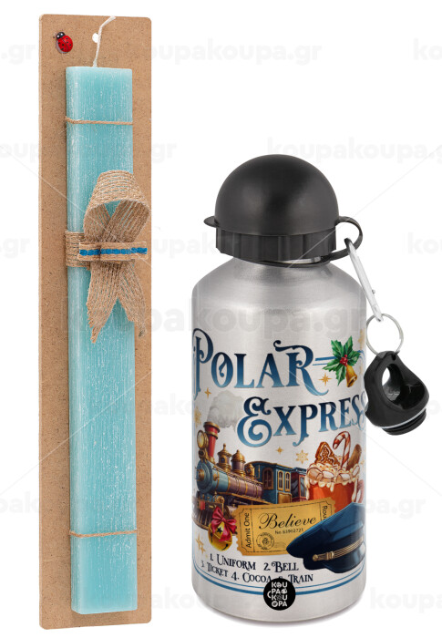 The Polar Express, Easter Set, metallic silver aluminum water bottle (500ml) & scented flat Easter candle (30cm) (TURQUOISE)