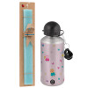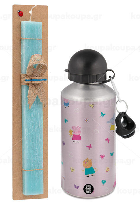 Πέππα το γουρουνάκι και οι φίλοι της, Easter Set, metallic silver aluminum water bottle (500ml) & scented flat Easter candle (30cm) (TURQUOISE)