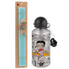 Betty Boop, Easter Set, metallic silver aluminum water bottle (500ml) & scented flat Easter candle (30cm) (TURQUOISE)