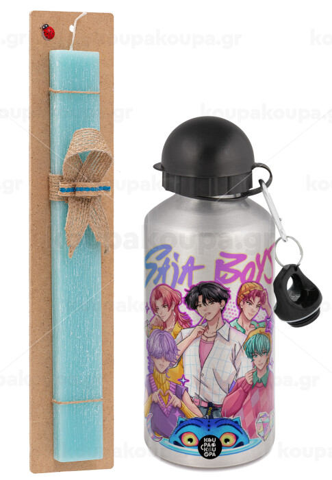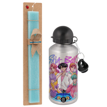Huntrix Saja Boys, Easter Set, metallic silver aluminum water bottle (500ml) & scented flat Easter candle (30cm) (TURQUOISE)