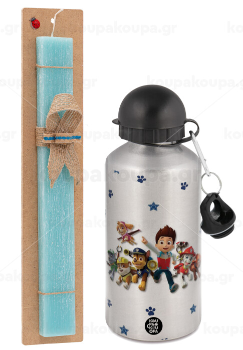 paw patrol, Easter Set, metallic silver aluminum water bottle (500ml) & scented flat Easter candle (30cm) (TURQUOISE)