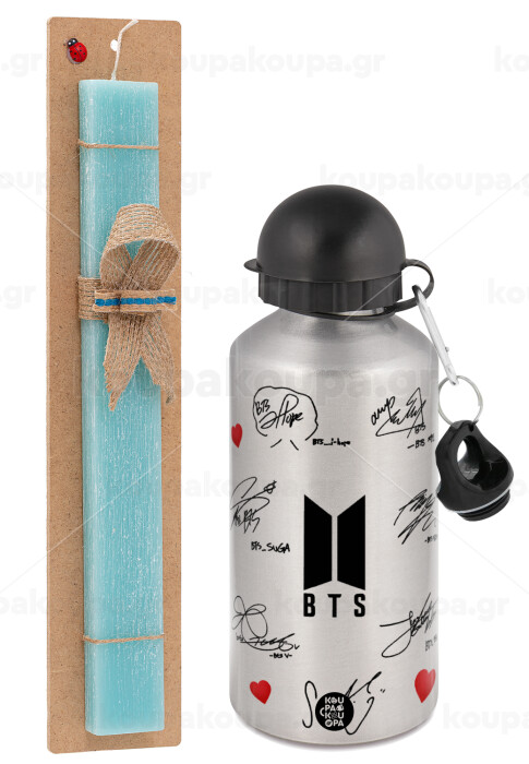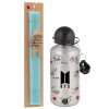 BTS signatures, Easter Set, metallic silver aluminum water bottle (500ml) & scented flat Easter candle (30cm) (TURQUOISE)