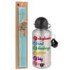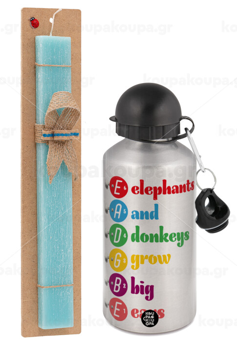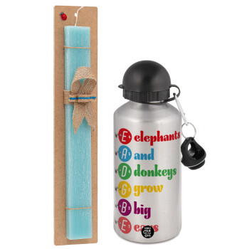 Elephants And Donkeys Grow Big Ears, Easter Set, metallic silver aluminum water bottle (500ml) & scented flat Easter candle (30cm) (TURQUOISE)