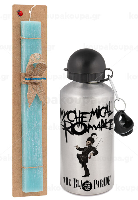 My Chemical Romance Black Parade, Easter Set, metallic silver aluminum water bottle (500ml) & scented flat Easter candle (30cm) (TURQUOISE)