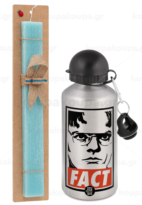 Dunder Mifflin FACT, Easter Set, metallic silver aluminum water bottle (500ml) & scented flat Easter candle (30cm) (TURQUOISE)
