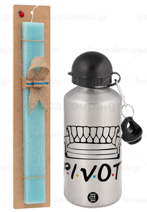 Friends Pivot, Easter Set, metallic silver aluminum water bottle (500ml) & scented flat Easter candle (30cm) (TURQUOISE)