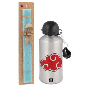 Naruto Akatsuki Cloud, Easter Set, metallic silver aluminum water bottle (500ml) & scented flat Easter candle (30cm) (TURQUOISE)
