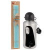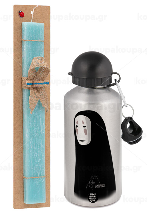 Spirited Away No Face, Easter Set, metallic silver aluminum water bottle (500ml) & scented flat Easter candle (30cm) (TURQUOISE)